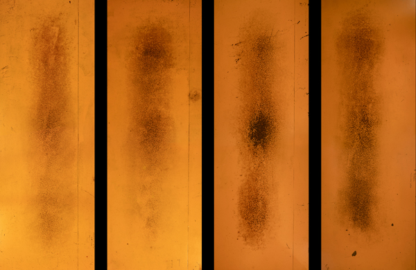 These photographs depict prison metal bunks with body "imprints" of detainees of the former detention center in Vilnius, Lithuania. The body movements erased the paint on bunk surfaces leaving traces of the prisoners’ presence. Throughout the history of this building, starting from 19th century, this place was used as a political prison. Later, it was used as a Detention Center by Lithuania until 2019.